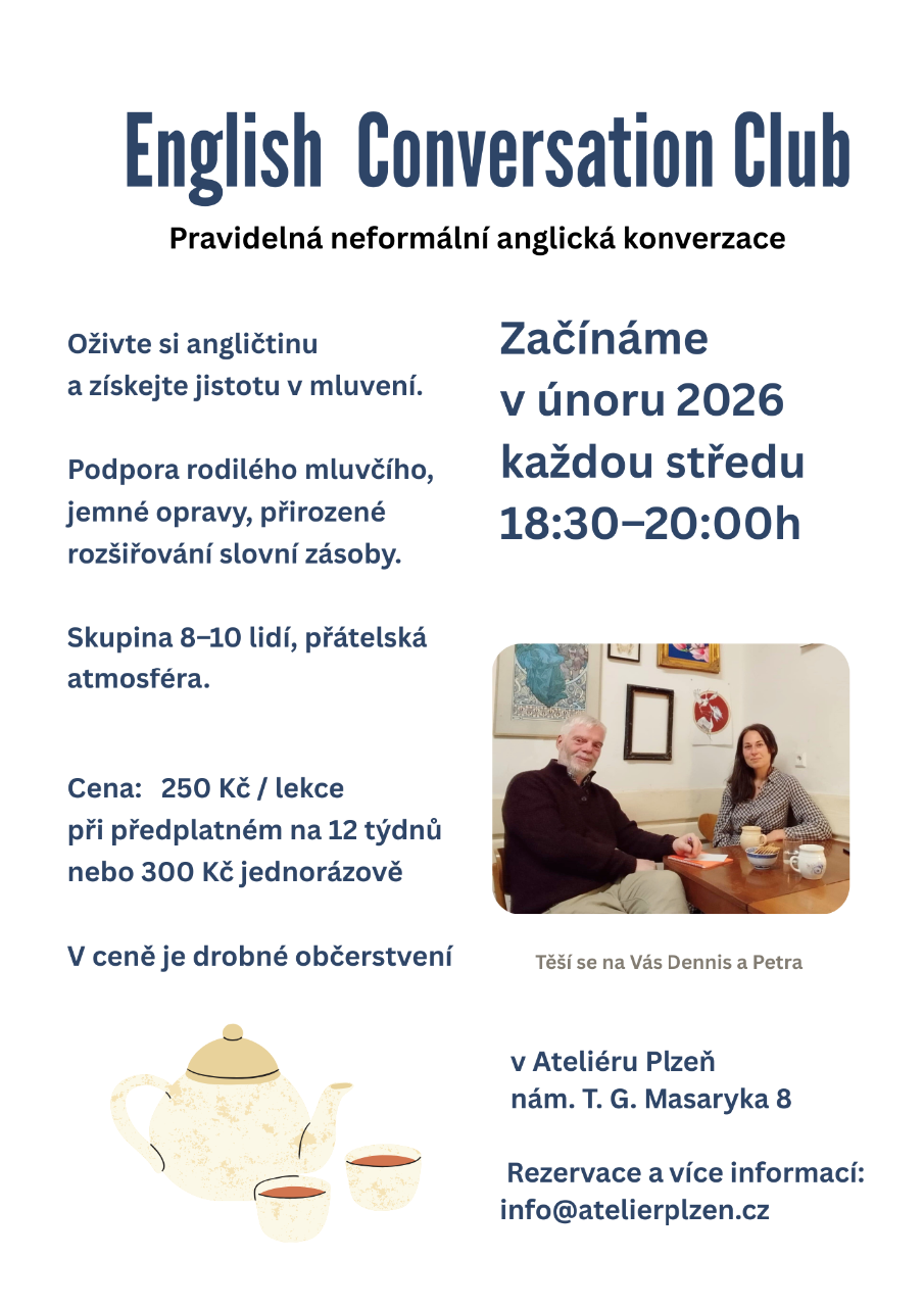 přihlášky: info@atelierplzen.cz, tel.: 601 506 263